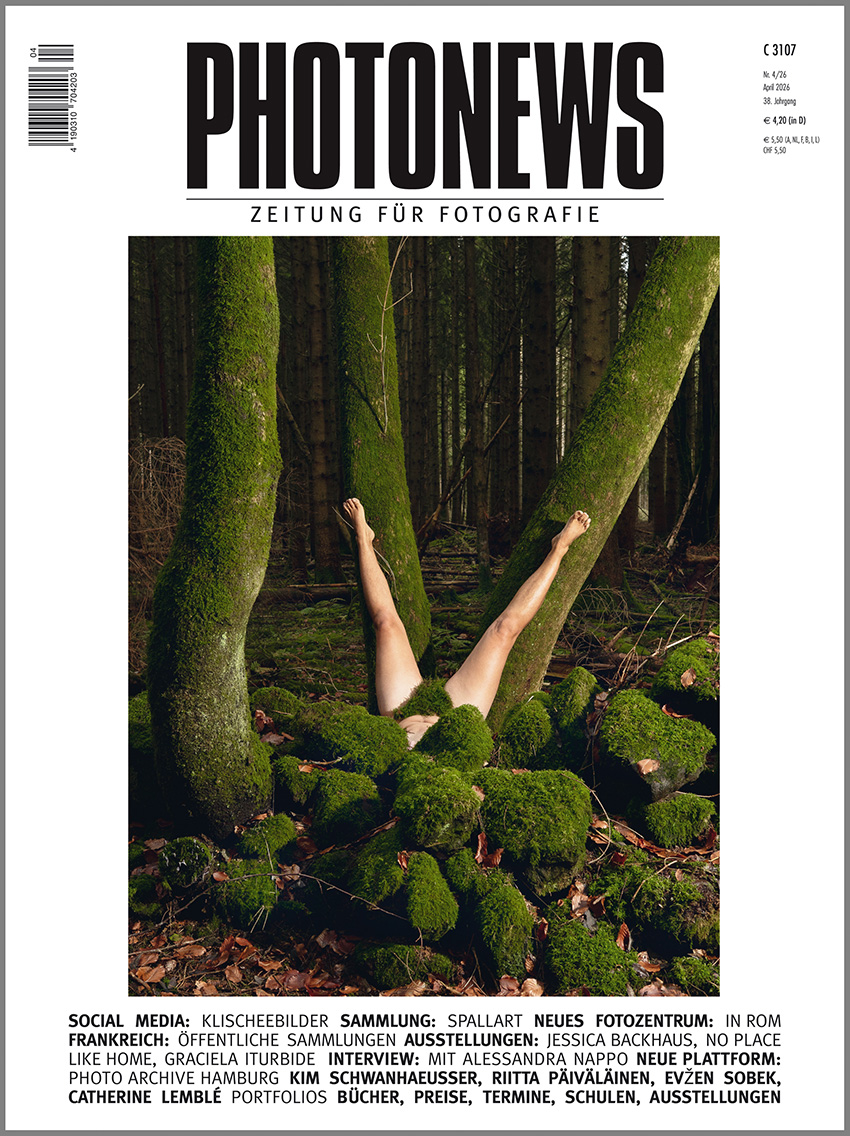 Die PHOTONEWS April 2026 hat u. a. einen Schwerpunkt im Bereich der Sammlungen und Institutionen: Thomas Honickel stellt die Sammlerin Andra Spallart vor; Thilo Koenig hat das neue Fotozentrum im Mattatoio in Rom besucht; J. Emil Sennewald blickt auf die vielen öffentlichen Sammlungen in Frankreich und wir widmen dem Start der Plattform Photo Archive Hamburg einen Beitrag. In Portfolios stellen wir Arbeiten von Kim Schwanhaeusser, Riitta Päiväläinen, Evžen Sobek und Catherine Lemblé vor. Warum Bilder von Kindern auf Social Media allzu oft in einem Klischeemotiv enden beschreibt Sabina Paries in ihrem Essay während Patricia Kühfuss in ihrem Zwischenruf Antworten liefert zur Frage Warum noch Bilder machen gehen? Es gibt Ausstellungsbesprechungen zu Jessica Backhaus (Frankfurt), Graciela Iturbide (C/O Berlin) und „No Place like home“ (Sindelfingen). Außerdem im Heft: Interview mit der Kuratorin Alessandra Nappo (in der Reihe Ute Noll fragt nach) +++ 8. Vonovia Award für Fotografie …